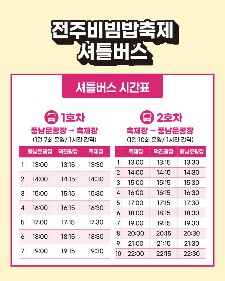 전주비빔밥 셔틀버스를 이용하여 주시기 바랍니다.